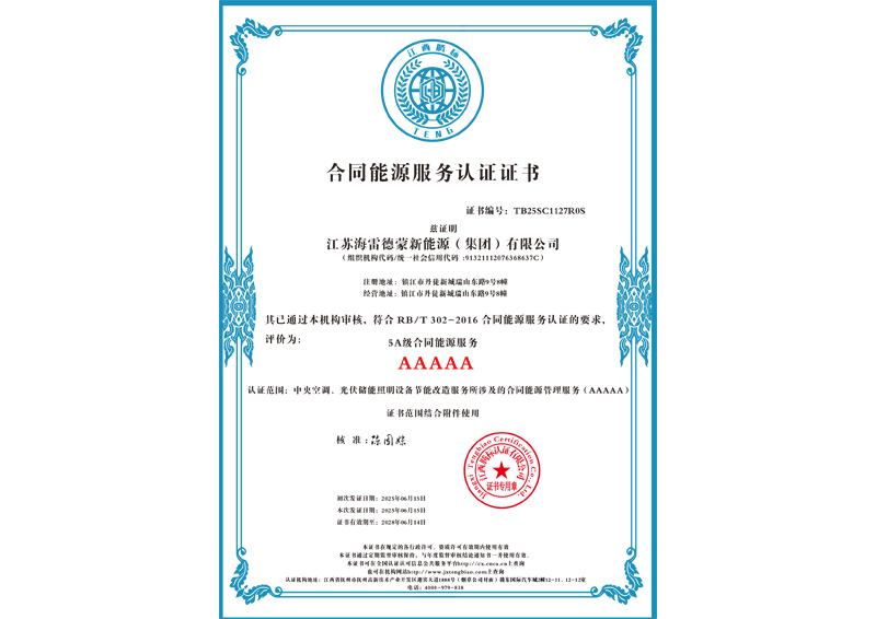 合同能源服務(wù)認證證書